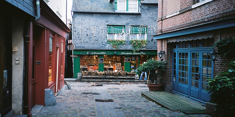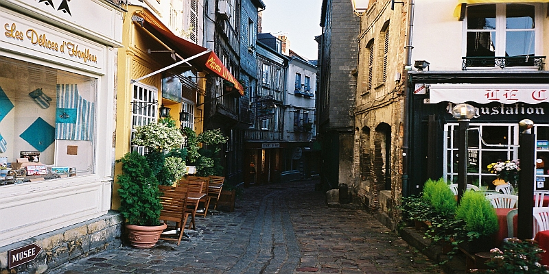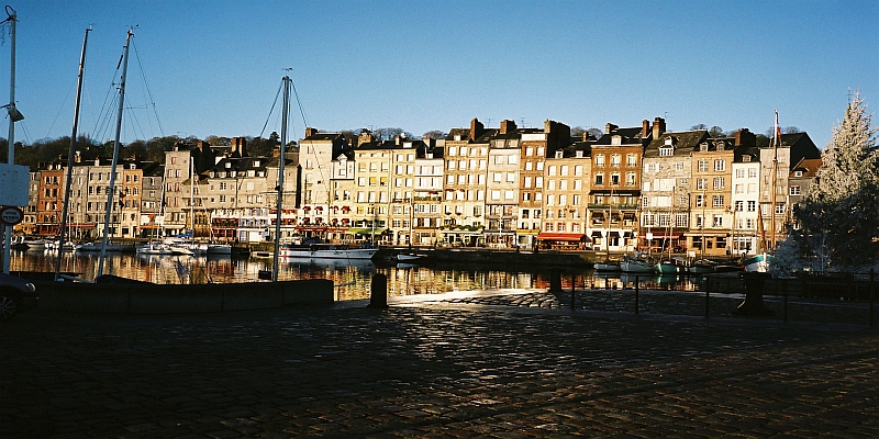 The colorful port town of Honfleur, full of half-timber houses and cobbled streets, was once an important departure point for maritime expeditions. It’s located on the southern bank of the estuary of the Seine, across from le Havre and very close to the exit of the Pont de Normandie. Honfleur is especially known for its old, beautiful picturesque port, characterized by its houses with slate-covered frontages, painted many times by artists.